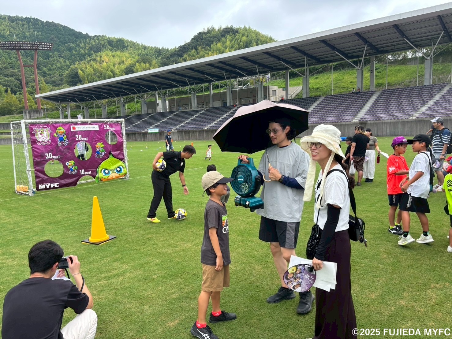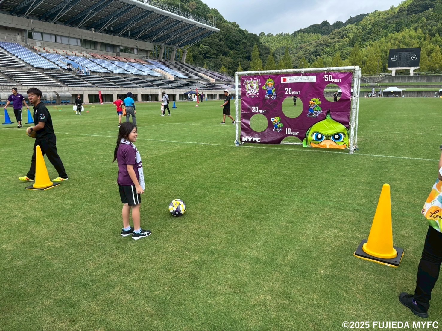藤枝MYFCのブースでは、ボールを蹴って合計点を競うキックターゲットを実施しました。