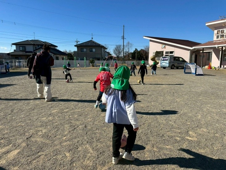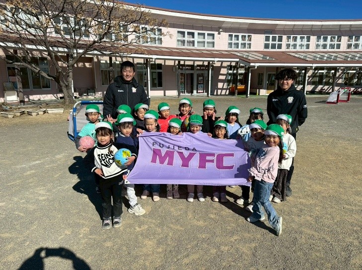 令和7年度、ホームタウン吉田町内の4つの保育園において、藤枝MYFCのスクールコーチがサッカー教室を行いました。