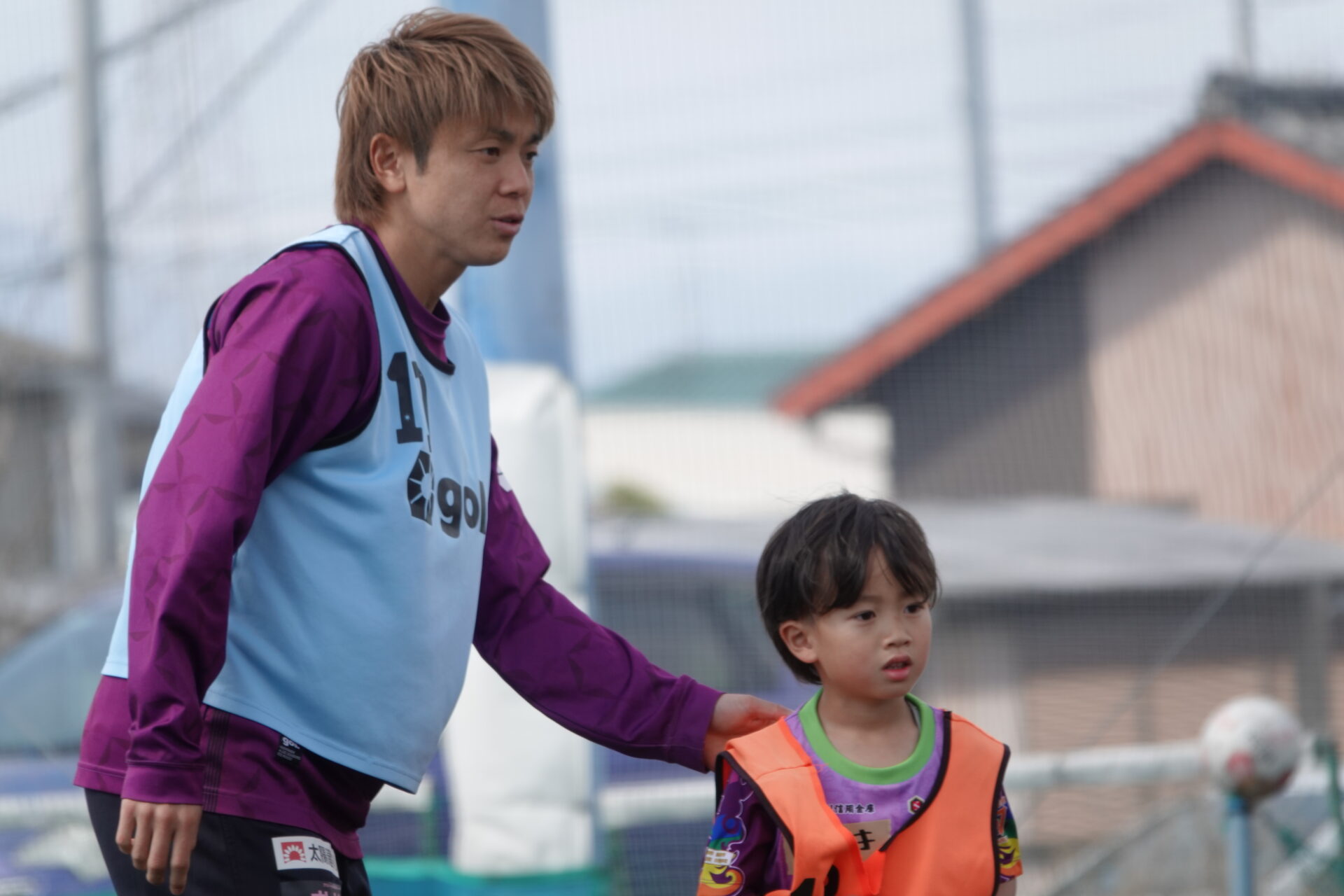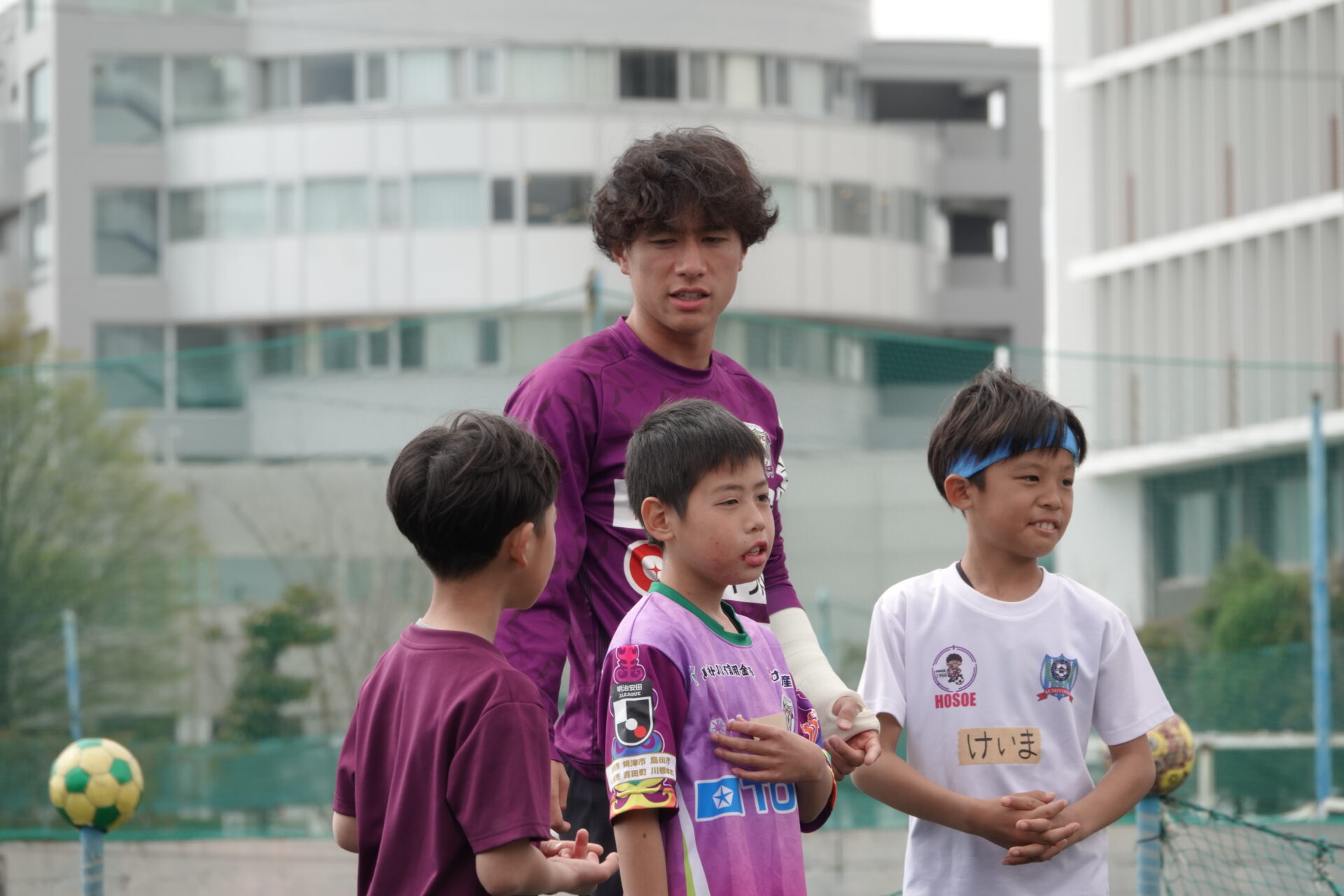 サッカー教室は、ウォーミングアップから始まり、ドリブルやパス、シュートといった基礎技術のトレーニング、実践形式のミニゲームまで幅広く実施。選手たちは一人ひとりに丁寧に声をかけながら、プレーのコツやサッカーの楽しさを伝えていました。