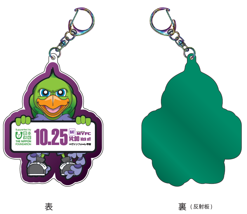 【内容】自転車で来場してCO2削減に繋げよう!自転車でスタジアムへお越しの方に…「藤枝MYFCオリジナル反射シート付キーホルダー」をプレゼント!