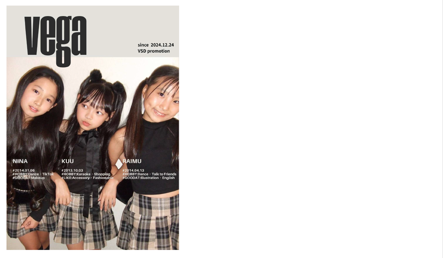 【内容】2024年12月24日に結成!ダンスと歌が大好きな小学生3人組Dance & Vocalユニット。今、この瞬間にしか見られないフレッシュでまっすぐなパフォーマンスを届けます。