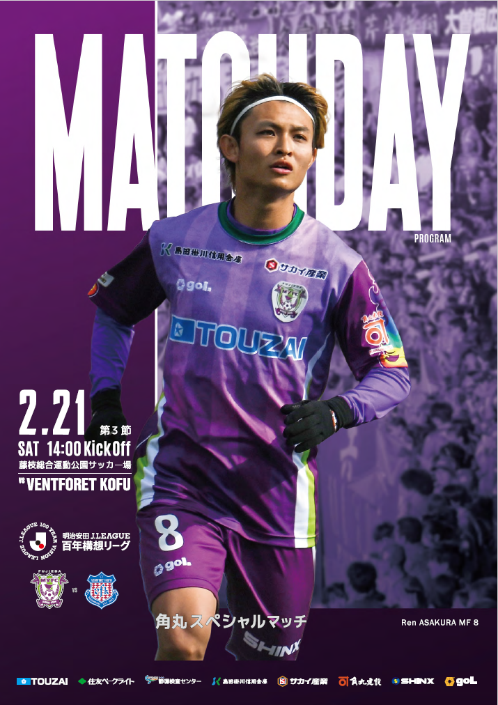 2月21日(土)14:00キックオフ、ヴァンフォーレ甲府戦のマッチデープログラムを公開します。